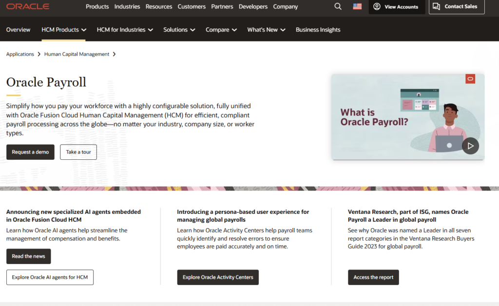 Oracle Payroll是Oracle HCM Cloud套件中的核心产品,是全球范围内应用广泛的企业级薪酬解决方案。它以极高的合规性和强大的计算引擎著称,能够支持全球一百多个国家的劳动法规与税务要求,是跨国企业的首选工具之一。