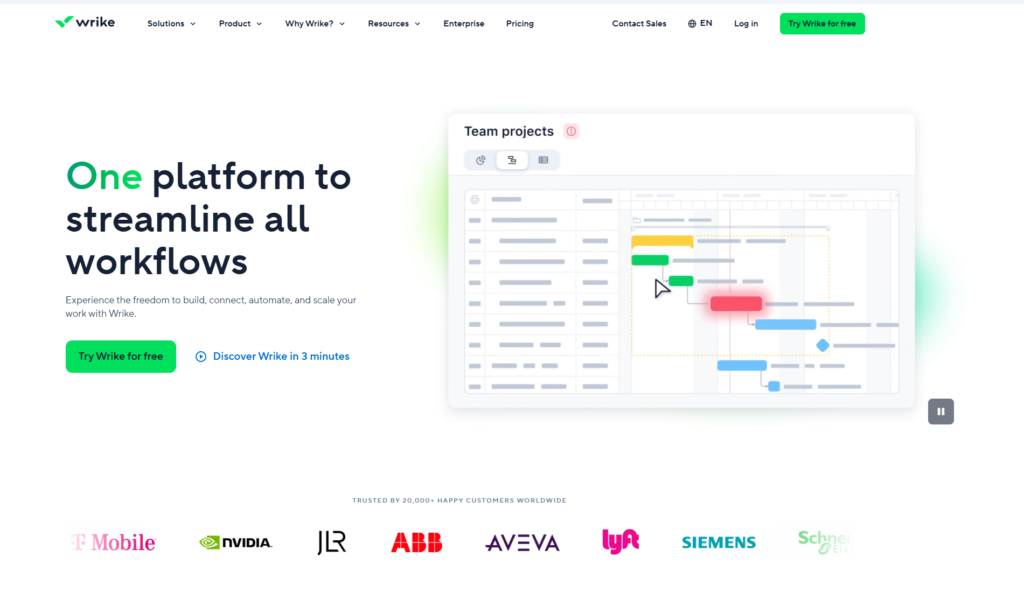 从功能完整度看,Wrike 的强项在于项目执行与管理层视角:常见能力包括甘特图与依赖关系、里程碑、报表与仪表盘、资源规划、时间追踪、自动化工作流等,覆盖从计划到交付再到复盘的链路。同时它也提供较丰富的生态连接,支持与 Microsoft Teams、Google Drive、Salesforce 等第三方工具集成,适合把项目协作嵌入既有办公体系,减少信息在多工具间来回搬运。