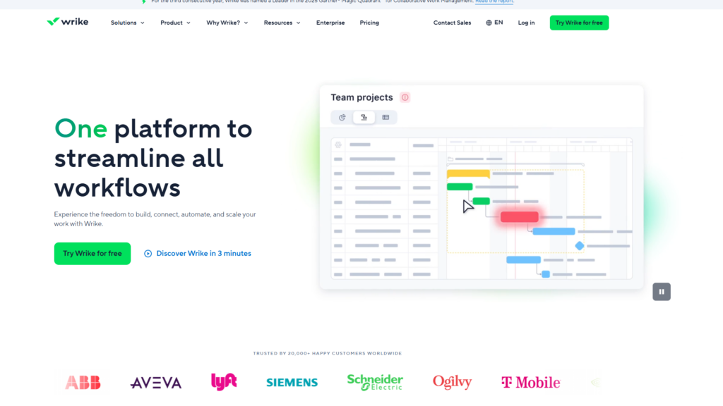Wrike 在国外属于偏企业级的在线项目管理与工作管理平台,覆盖从项目计划到执行跟踪、资源视角管理与报表分析的较完整链路,常用于营销、专业服务、产品与运营等团队。