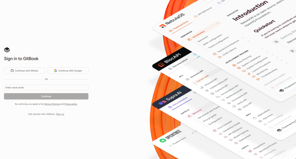 推荐理由: GitBook 的工作流深度契合开发者的习惯,它支持与 GitHub 或 GitLab 进行双向同步,真正实现了“像写代码一样写文档”。这意味着文档的更新可以伴随代码的提交自动触发,确保了技术文档与软件版本的严格一致性。它原生支持 Markdown 语法,排版专注于代码块的高亮与可读性,非常适合撰写 API 文档、SDK 说明书或技术架构白皮书。其独特的“分支(Branching)”管理功能,让团队可以在不影响主版本的情况下并行撰写新版本的文档。