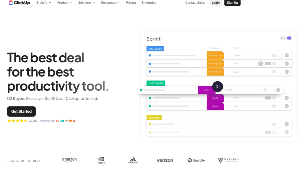 4. ClickUp:不仅是项目管理的全能生产力平台