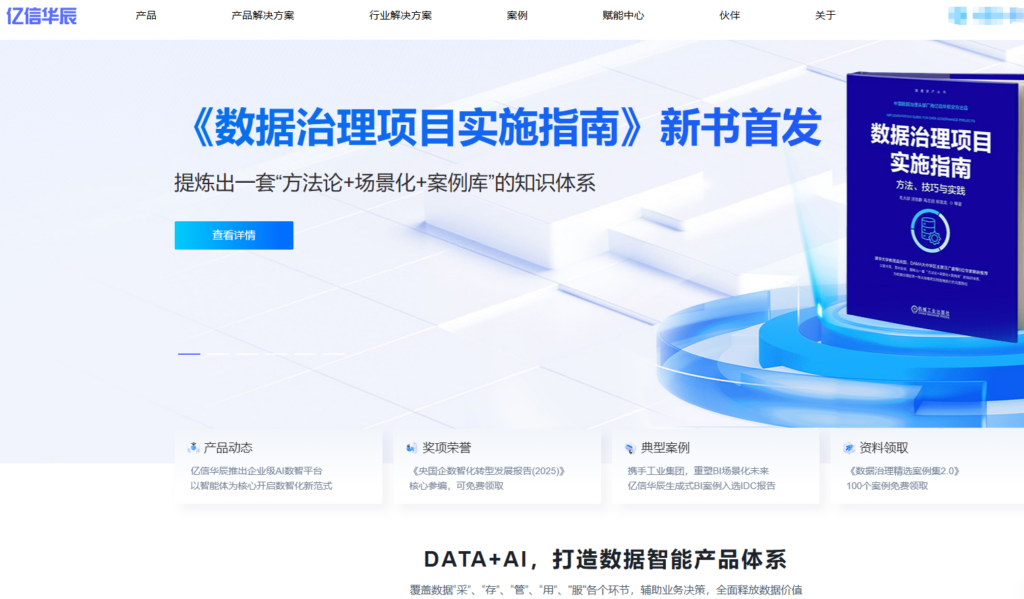 亿信华辰是国内较早深耕大数据领域的厂商之一,其数据中台核心产品睿治数据治理平台覆盖了从数据采集、清洗、建模到分析的全生命周期管理。该产品在信创适配方面具有显著优势,能够与主流国产数据库及软硬件环境完成兼容,为企业提供从源头保障代码自主可控的数字化底座。