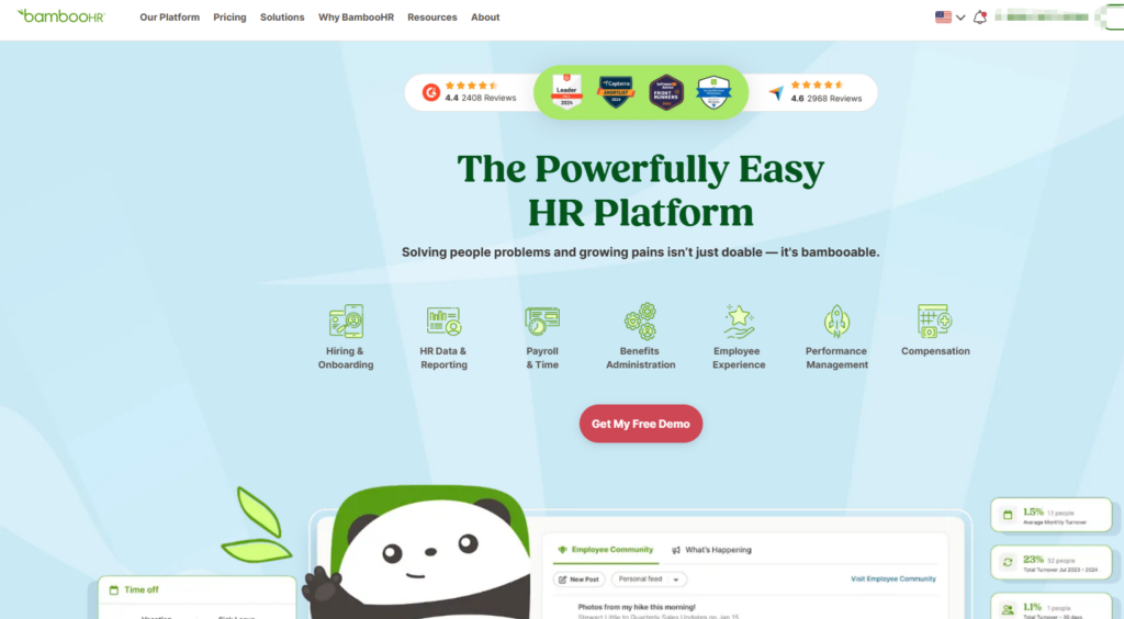 BambooHR 是一家专门为中小型企业量身打造的 SaaS 人力资源管理工具,以简洁的操作界面和良好的易用性在国际市场上获得了广泛认可。其核心功能集中在核心人事、入职体验、绩效管理和企业文化培育等方面,旨在通过标准化的流程帮助小规模团队快速建立专业的人事管理体系。