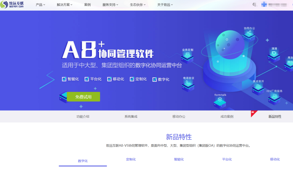 产品简介:致远互联旗下的核心产品,一款面向中大型集团企业的协同管理软件(COP)。它不仅仅是办公自动化(OA),更是集成了流程管理、业务定制与数据分析的综合性平台。