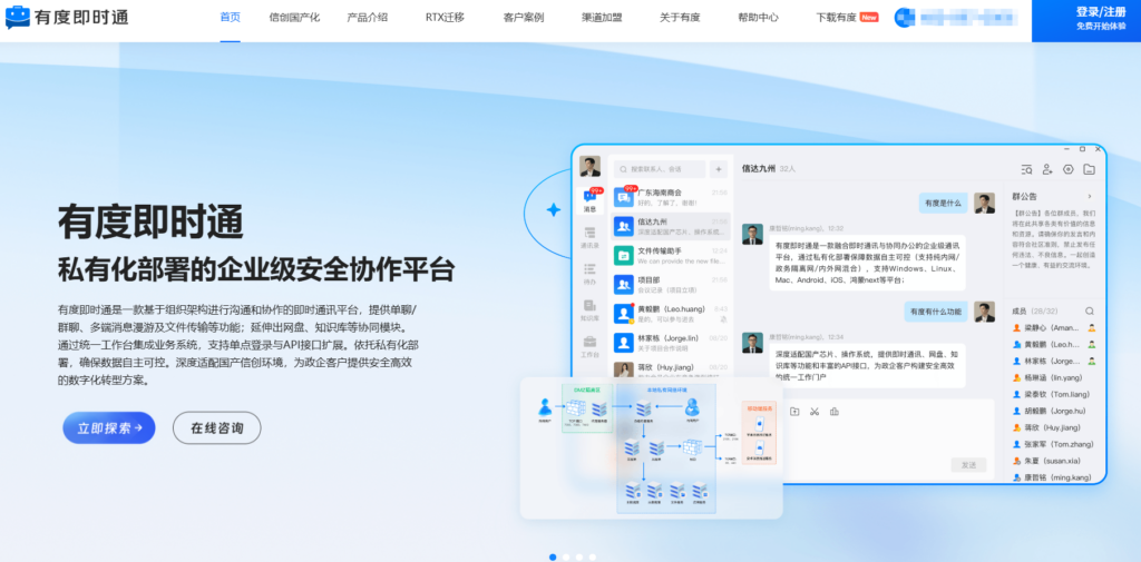 产品简介:一款专注于私有化部署的企业级即时通讯软件,主打高安全性与内网环境下的稳定通信,常被视为 RTX(腾讯通)的现代化替代方案。