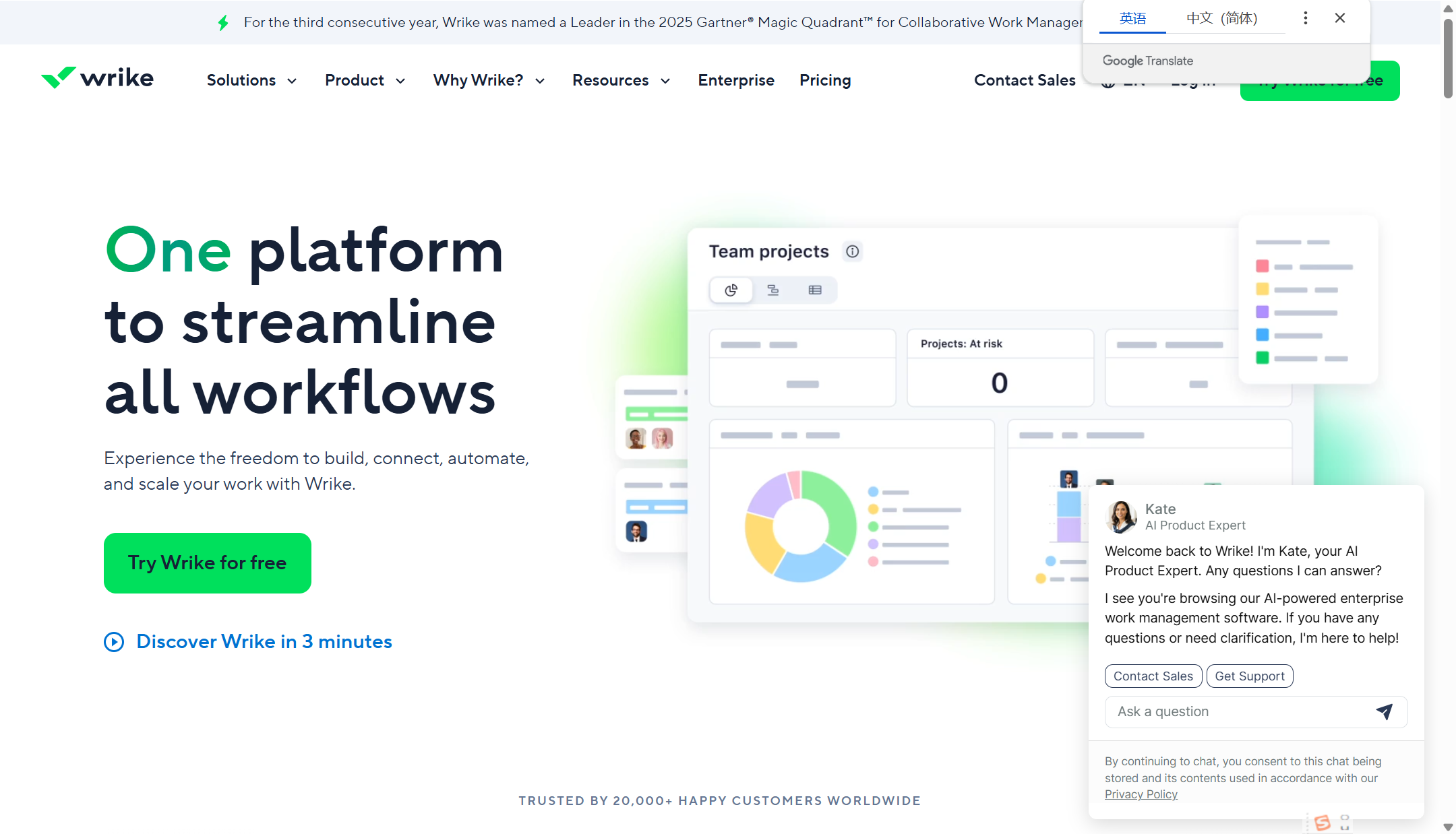 Wrike 是一款面向专业级项目管理与多部门协作的工具,支持甘特图、任务依赖、资源管理、工作量视图、进度跟踪等较完整的项目管理能力。在涉及复杂项目、严格进度控制与多部门资源调配的场景下,Wrike 能提供较好的管理结构与可视化能力。