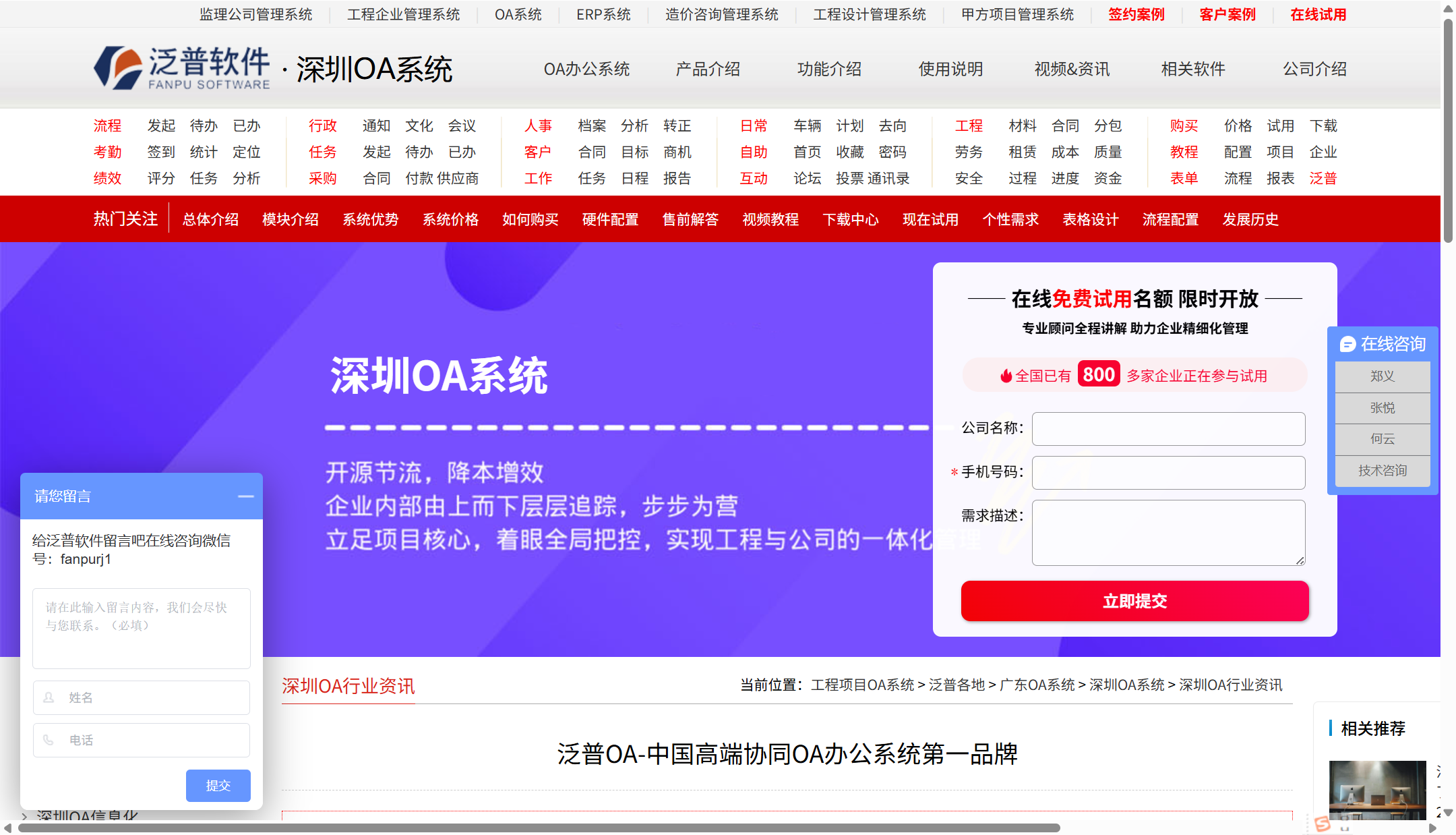 泛普 OA(泛普软件)是国内一款面向企业协同与项目管理的 OA 平台,在建筑与施工行业也被用于支持进度管理和流程协同。该系统提供文档管理、审批流程、项目任务跟踪及进度报告等功能,通过标准化流程和可视化任务面板提升企业内部沟通与执行效率。泛普 OA 通常用于企业内部流程规范化,使得信息在各个部门之间能够顺畅流转。