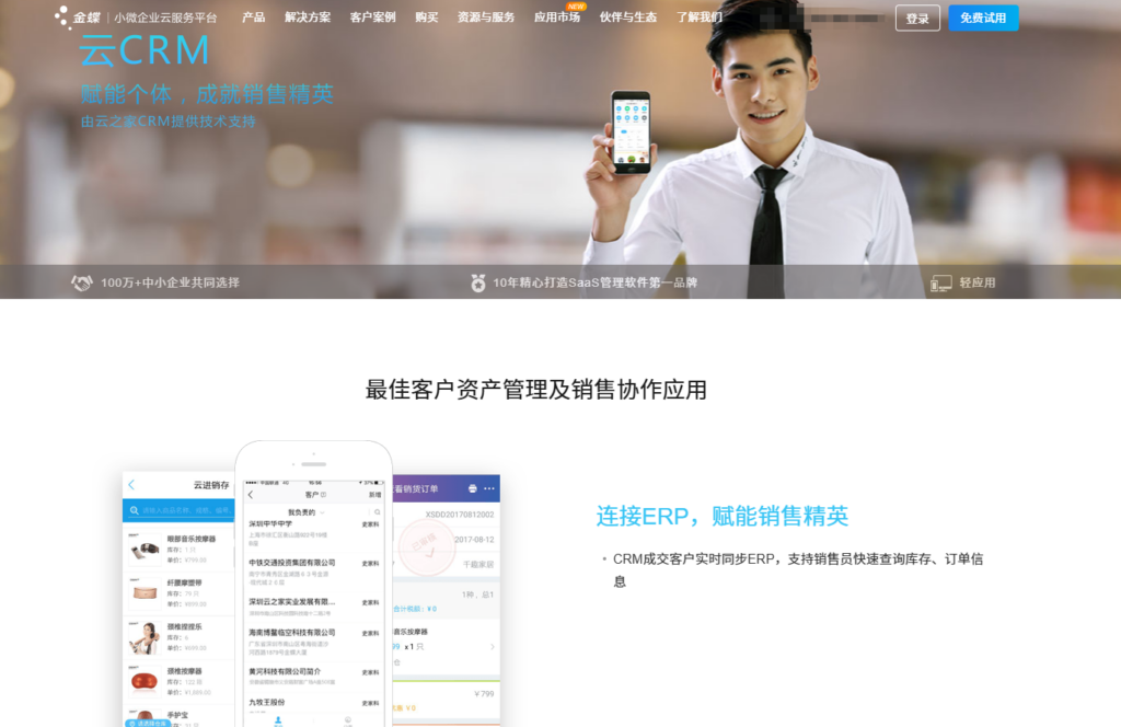 金蝶 CRM 通常集成在金蝶旗下的云产品中,是微型商贸企业数字化转型的常用选择。它最大的特点是与金蝶强大的财务和进销存系统有着天然的兼容性,能够实现客户管理与后端账务、库存数据的实时联动。