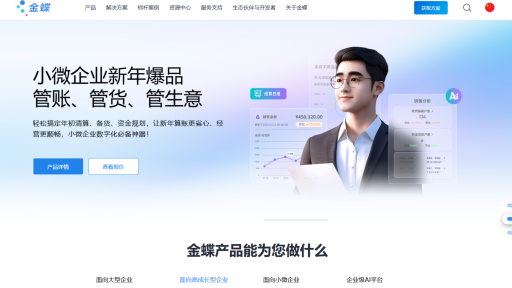 金蝶CRM是金蝶云系列产品中的重要组成部分,其最大的竞争优势在于“业财一体化”的深度融合。依托金蝶三十余年在财务管理领域的积淀,该CRM系统实现了销售线索、商机订单与财务账表、资金回笼的底层互通。这种设计从根本上解决了销售数据与财务数据“两张皮”的难题,能够帮助企业在获客的同时,实现更严谨的成本核算与风险控制。