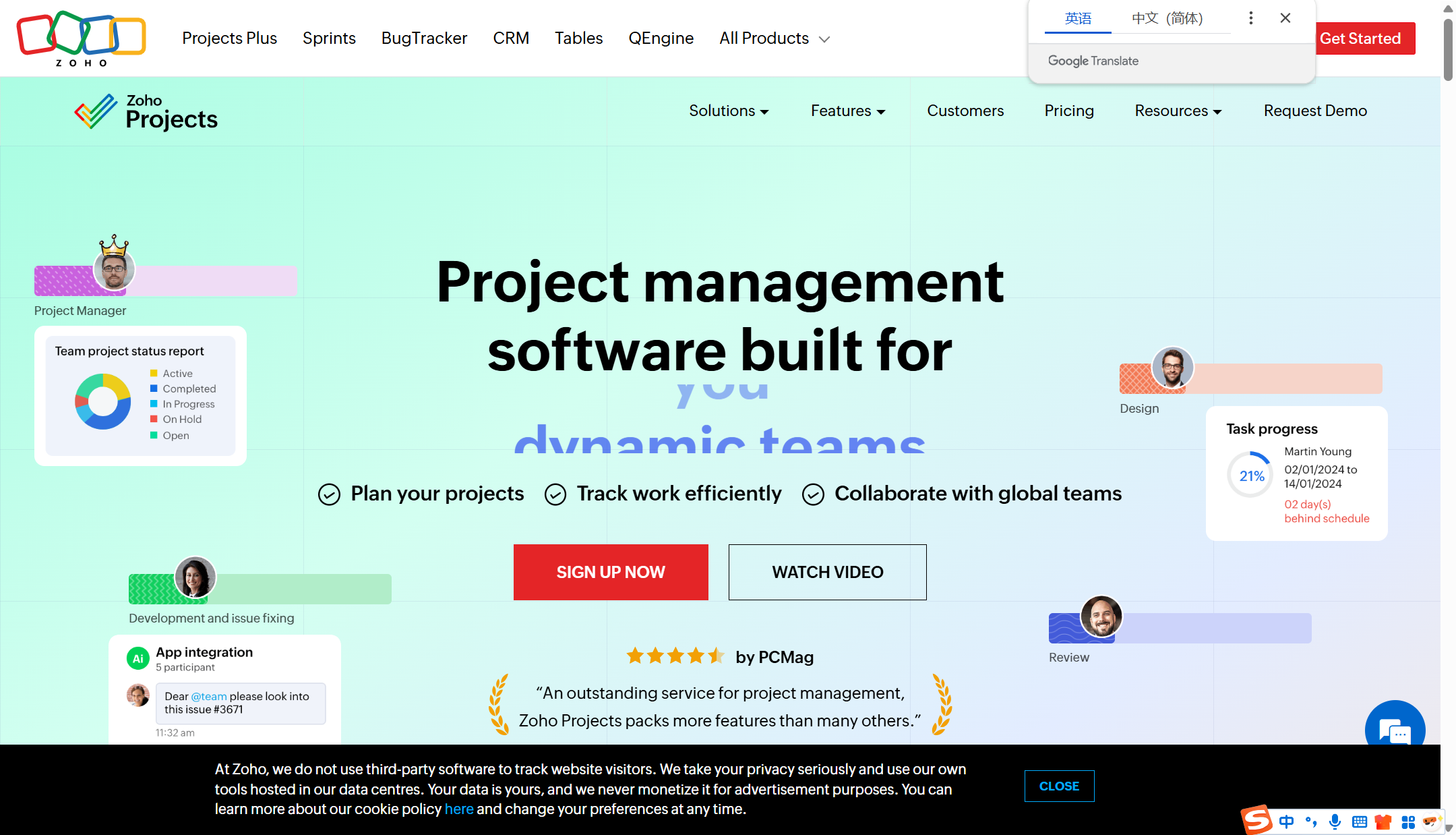 在团队协作与管理维度,Zoho Projects 也强调 自动化通知/工作流、工时记录与报表,以及与 Zoho 生态和第三方工具的集成;同时其页面展示了 ISO 27001 等安全相关信息。整体看,它更适合希望在一个系统里同时处理“任务、排期、工时与汇总视图”的团队;落地时通常需要先把字段、状态与通知规则配置到贴合自身流程。