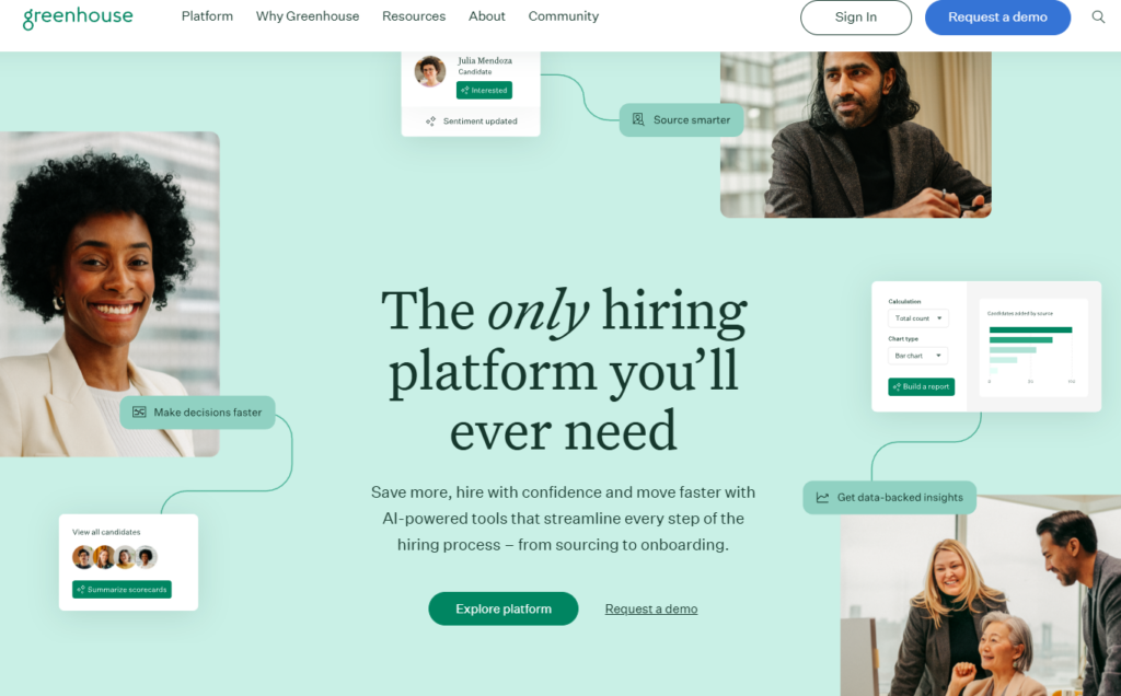 Greenhouse 是全球范围内极具影响力的招聘管理系统(ATS),以“结构化招聘”理念著称。它不仅提供基础的候选人追踪功能,更专注于帮助企业建立公平、透明且数据驱动的招聘标准,例如通过面试计分卡和标准化的反馈流程来减少招聘偏见。