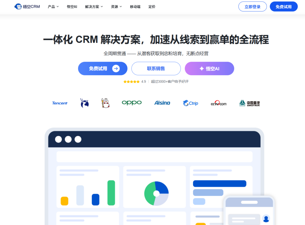 悟空CRM以其开源背景和极高的易用性在国内 CRM 市场中占据了重要地位。它为企业提供了包括线索管理、客户管理、商机管理以及进销存在内的全方位功能。系统界面简洁直观,能够让员工快速上手,降低了企业在软件引入阶段的学习成本和落地阻力。