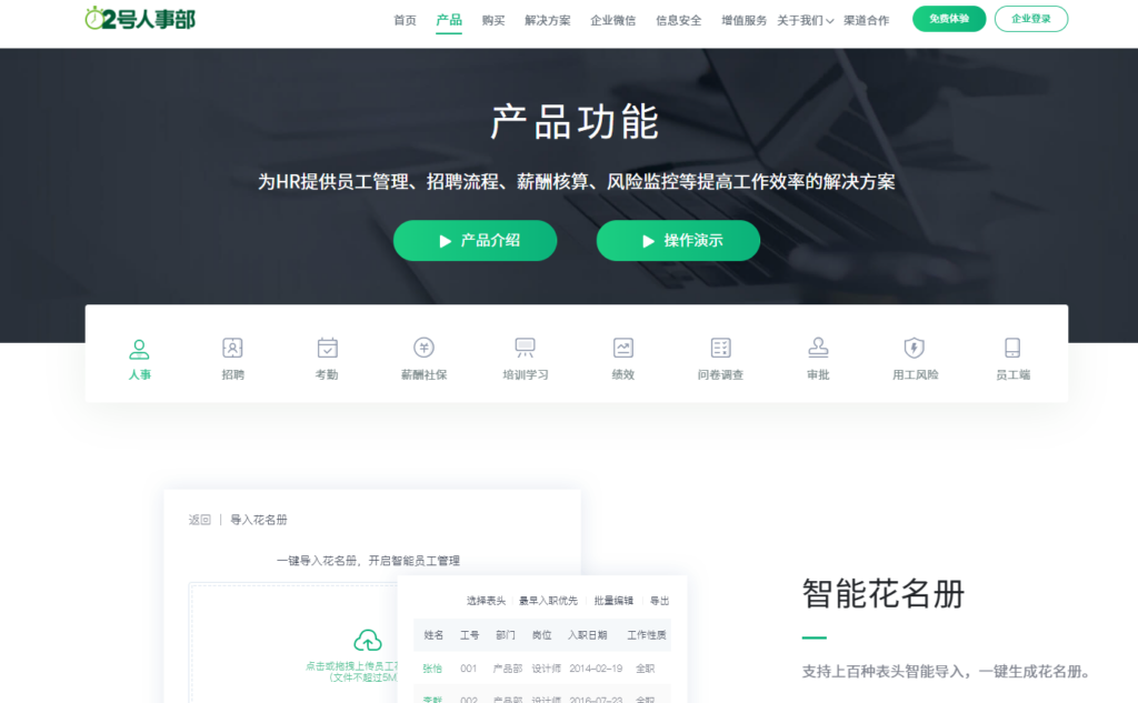 2号人事部是一款由点米科技推出的即时生效型 HR SaaS 软件,主要面向追求快速部署和易用性的中小企业。它通过极简的操作界面和智能化的算法,帮助 HR 在短时间内完成员工档案管理、考勤计算及薪资核算。