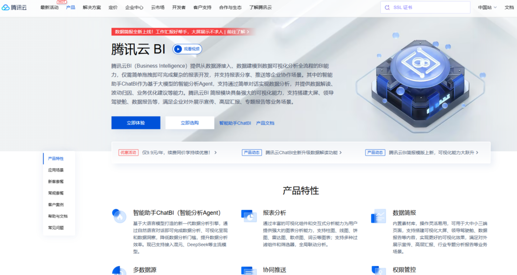 在 2026 年,腾讯云 BI 重点推出了基于大模型的智能分析助手,支持自然语言对话生成图表及自动归因。这种“ChatBI”模式极大地释放了非技术人员的数据处理压力,使其能够更专注于业务逻辑本身,而非复杂的 SQL 编写或报表设计。