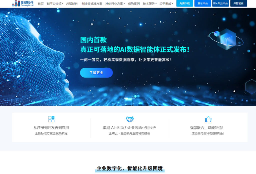 奥威 BI 深耕制造业与大型零售企业的财务与运营分析领域,以“方案套件化”和“快速落地”为核心竞争力。它预置了大量经过市场验证的行业分析模型,能够帮助企业在数周内完成从系统对接、数据清洗到经营看板上线的全过程。
