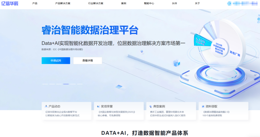 亿信 ABI 是由国内老牌厂商亿信华辰推出的一体化 BI 平台,深度集成了数据治理、数据采集与数据洞察等全栈能力。该产品在政务、金融及能源等对合规性和数据安全性有严苛要求的领域表现出色,支持全流程的数据质量监控与信创国产化环境适配。