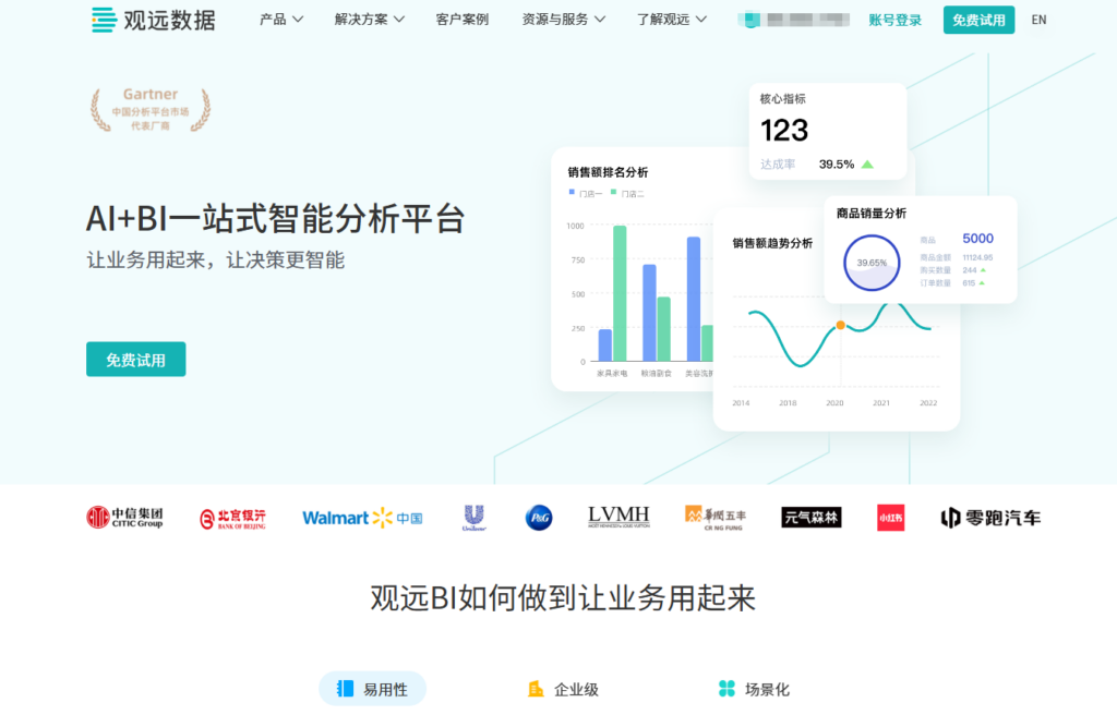 观远数据 BI 坚持“让业务用起来”的核心价值观,其产品设计高度契合现代零售、消费品及高科技企业的管理节奏。该平台采用了全拖拽式的交互设计和云原生架构,支持湖仓一体的数据处理模式,确保了从数据采集到最终决策建议的全链路敏捷性,能够帮助企业通过数据实时捕捉市场机会。