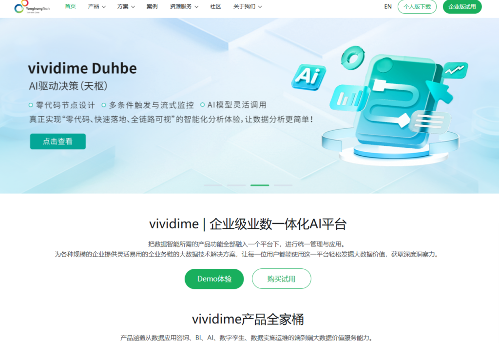永洪 BI 凭借自主研发的分布式计算引擎,在大规模数据处理性能上一直处于国内领先地位。它主打“人人都是数据分析师”的理念,提供了一站式的敏捷 BI 方案,涵盖了自服务数据准备、深度数据挖掘以及高级人工智能应用,能够支撑亿级数据在秒级内完成可视化反馈,有效解决了传统工具在高并发下的性能瓶颈。