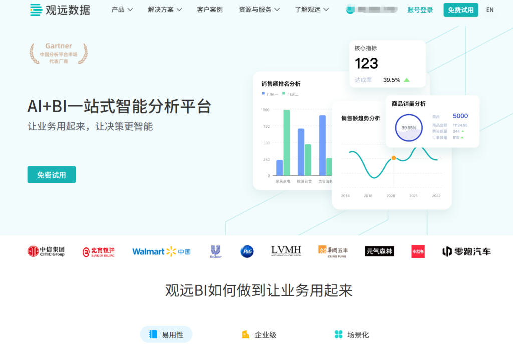 观远数据以“敏捷分析、智能决策”为核心理念,其产品架构设计紧跟云原生趋势,支持容器化部署和三节点高可用配置。它在零售、消费及数字化转型领先的互联网企业中表现活跃,强调从底层数据准备到顶层决策建议的全链路自动化。
