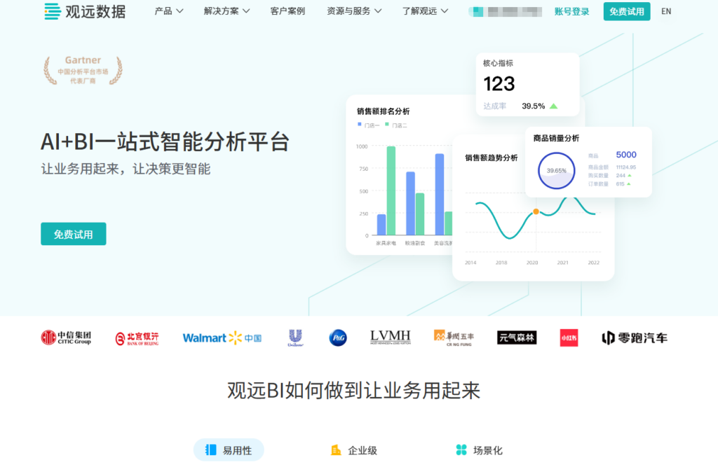 观远数据(Guandata)定位于“AI+BI”的新一代数据分析专家,致力于为零售、消费、金融等快速变化的行业提供决策支持。它提出了从“看数据”到“做决策”的进化理念,通过构建从敏捷分析到智能预测的闭环,帮助企业在复杂市场环境中寻找确定性。其界面设计简洁现代,操作逻辑非常符合年轻一代业务人员的使用习惯。