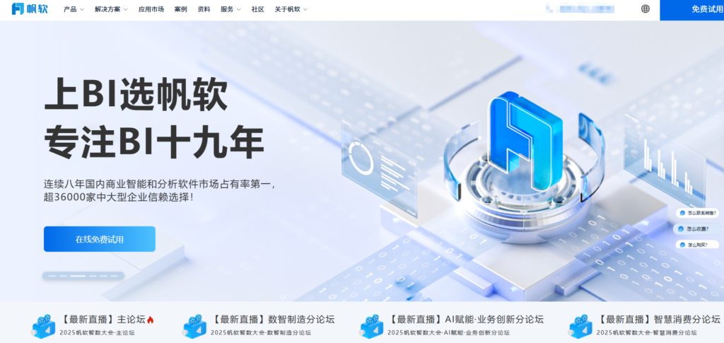 在企业级管理层面,帆软BI 展现出了极高的稳定性和适配性。它拥有成熟的数据权限控制体系,能够实现行列维度的精细化赋能,确保敏感数据在组织内的合规流动。此外,帆软建立了覆盖全国的服务支撑网络和活跃的互助社区,为企业提供了从选型、实施到人才培养的闭环生态保障,是众多行业头部企业构建数据中台、实现经营决策透明化的首选工具。