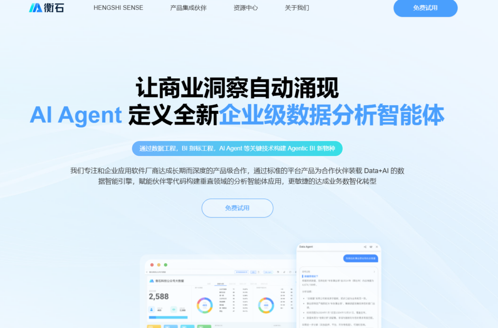 衡石科技(HENGSHI SENSE)是一款极具前瞻性的“分析 PaaS”平台,它将自己定位为“BI 引擎的开发者”。其核心目标是为专业的软件开发商(ISV)和大型企业的技术团队提供可嵌入的分析能力。通过高度解耦的微服务架构和丰富的 API/SDK,开发者可以将专业级的数据可视化、自助分析功能轻松嵌入到自己的 SaaS 应用或内部系统中,而无需耗费巨资自研。