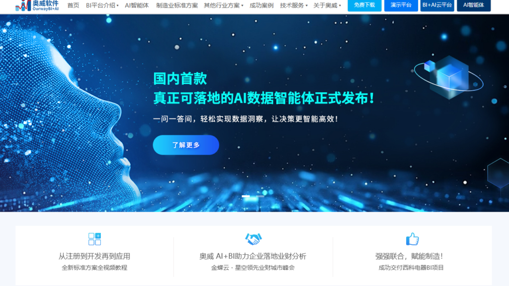 奥威BI 在国内 BI 领域拥有近二十年的技术积淀,是极少数能提供“标准化行业方案”的软件厂商之一。它深刻理解国内主流 ERP 系统(如用友、金蝶等)的底层数据逻辑,预置了大量开箱即用的财务、供应链、人力资源分析模型。这使得企业在导入 BI 系统时,无需从零开始梳理指标,大大降低了项目实施的风险和周期。