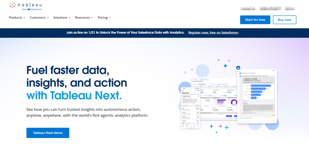 在被 Salesforce 收购后,Tableau 进一步强化了与 CRM 系统的集成以及 AI 驱动的“数据解释”功能。对于视数据为核心竞争力、且拥有专业数据分析师团队的企业而言,Tableau 依然是进行科学研究级分析与高端决策汇报的首选平台。