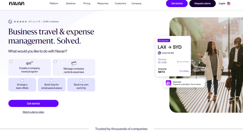 Navan是一款在国际市场上享有盛誉的差旅及费控管理平台。它将先进的商旅预订技术与创新的现代费用管理工具相结合,核心优势在于其庞大的实时差旅资源池。该平台利用AI技术为员工提供个性化的行程建议,同时实时监控企业的差旅支出,确保每笔开销都符合公司政策。