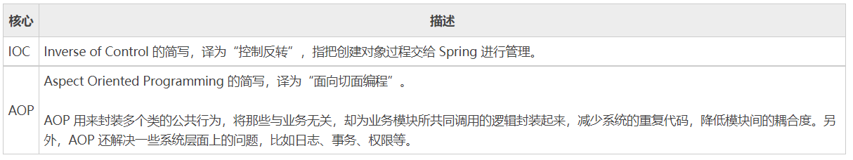 Spring 框架是一个分层的、面向切面的 Java 应用程序的一站式轻量级解决方案,它是 Spring 技术栈的核心和基础,是为了解决企业级应用开发的复杂性而创建的。