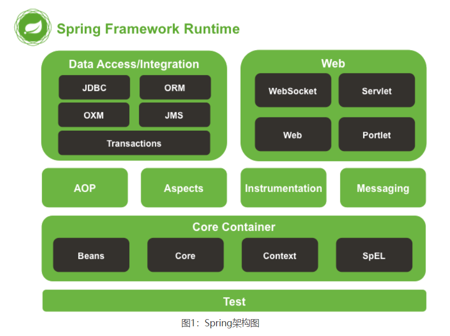 Test 模块:Spring 支持 Junit 和 TestNG 测试框架,而且还额外提供了一些基于 Spring 的测试功能,比如在测试 Web 框架时,模拟 Http 请求的功能。