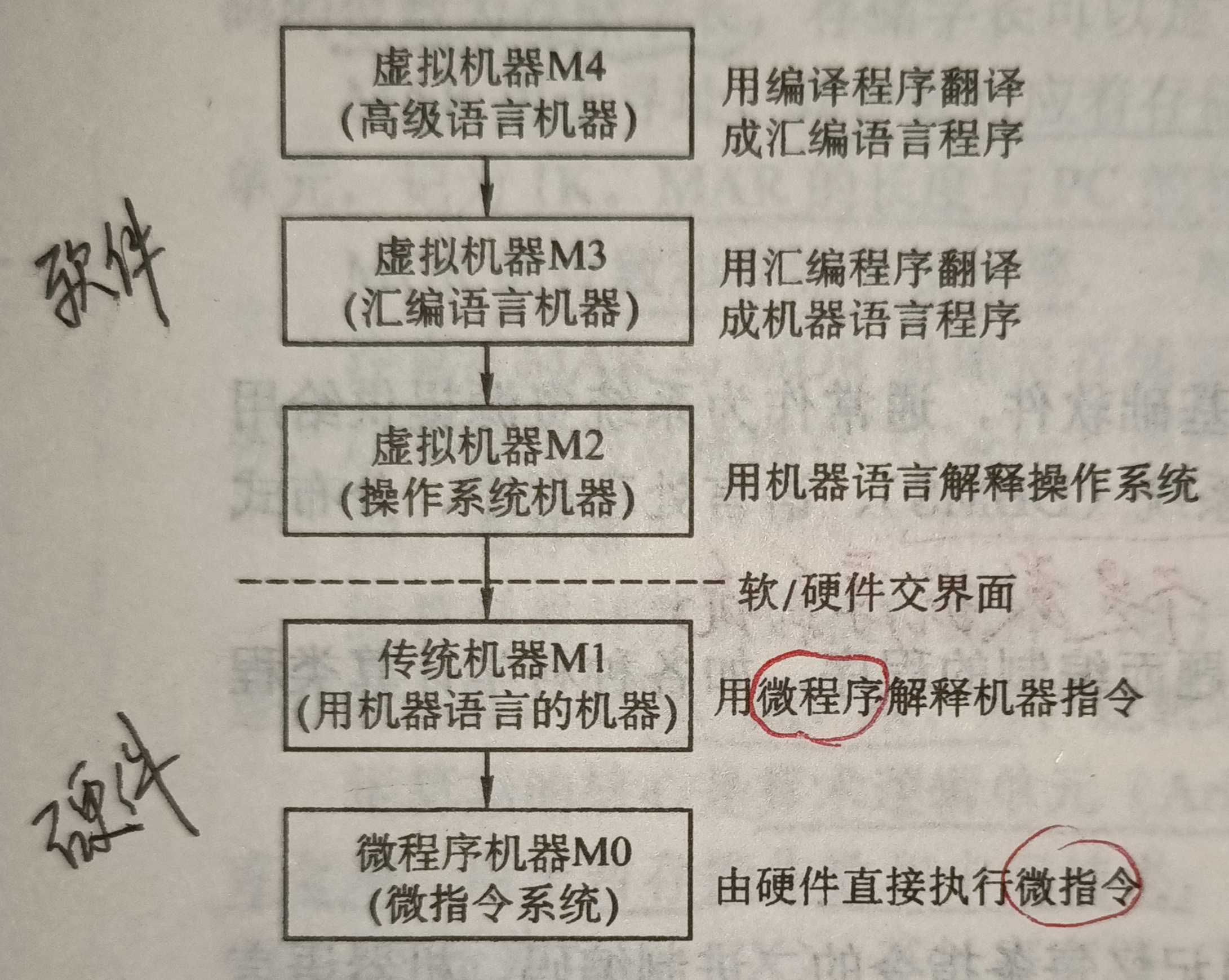 没有配置软件的纯硬件系统称为裸机(第12层)。第35层称为虚拟机,是由软件实现的机器。虚拟机器只对该层的观察者存在,该层的观察者只能通过该层的语言来使用计算机,而不关心下层是如何工作的。