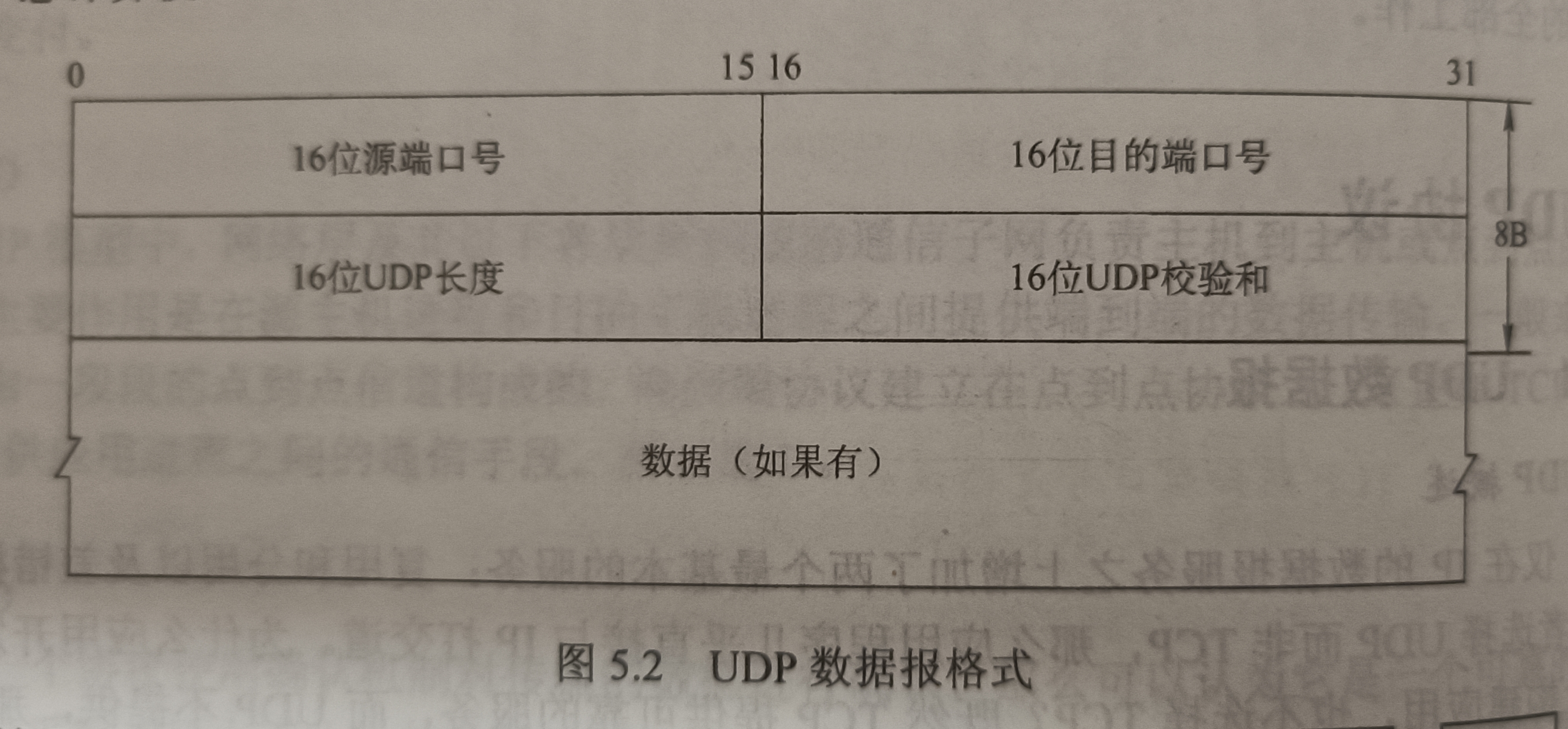 UDP首部有8B,由四个字段组成,每个字段的长度都是2B。各字段意义如下: