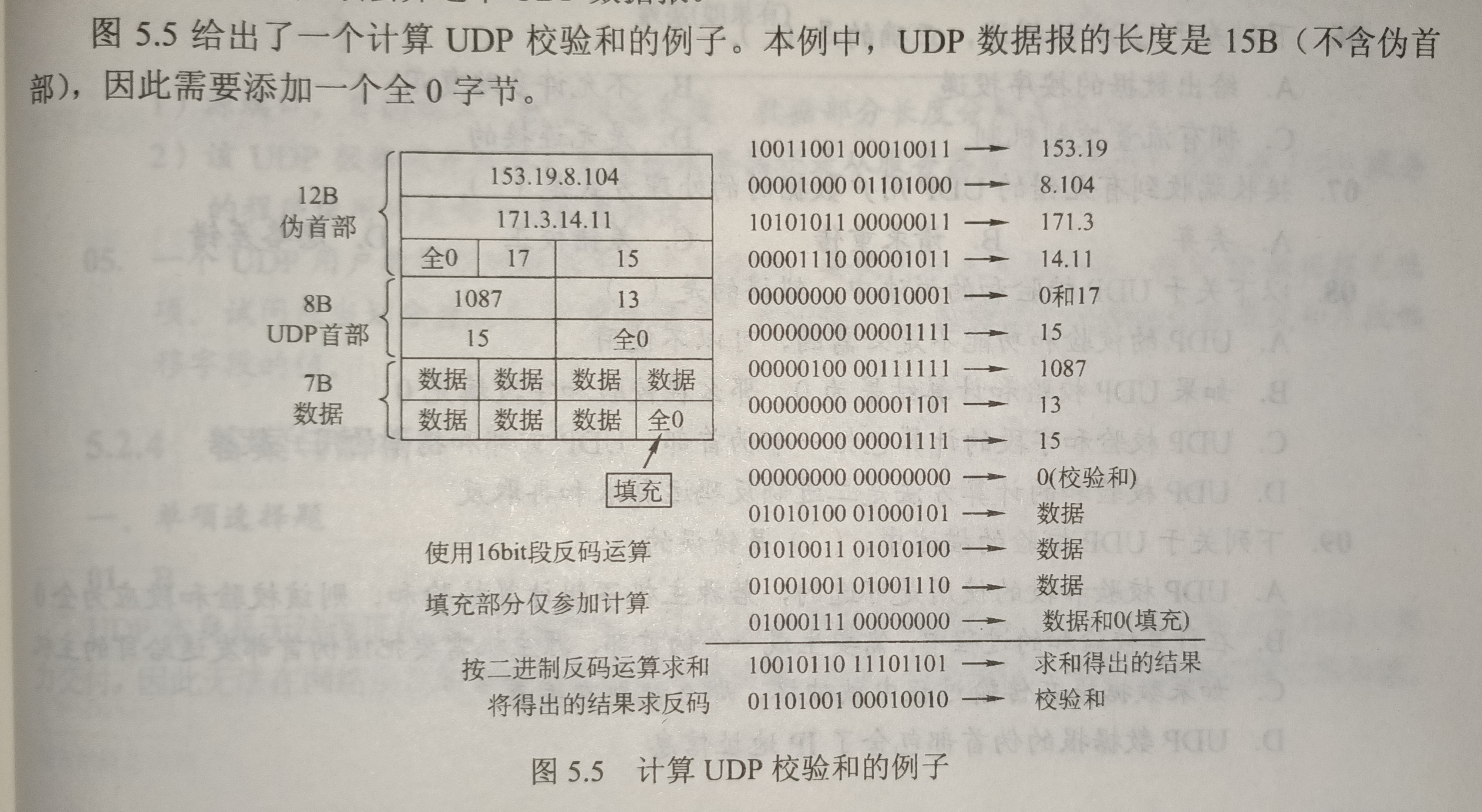 - 将收到的UDP数据报加上伪首部,若不为偶数个字节,那么还在数据部分末尾补上全0字节。