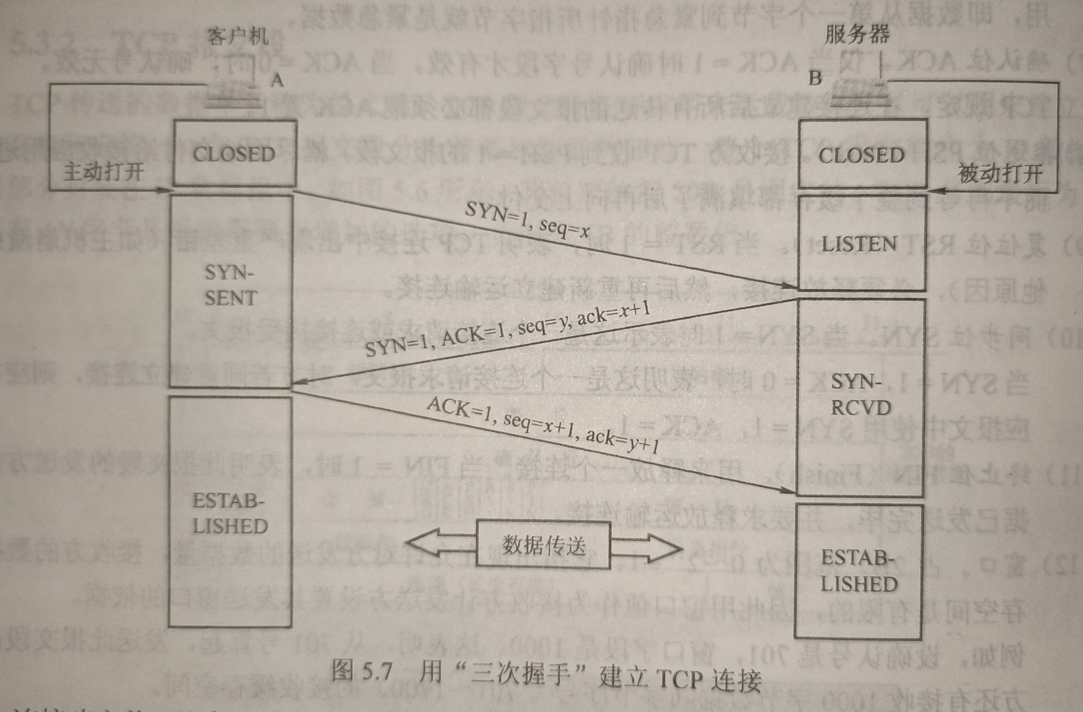 - 客户端A再向服务器B发送TCP连接请求报文②,顺利到达B,B发回确认(两次握手),连接建立。