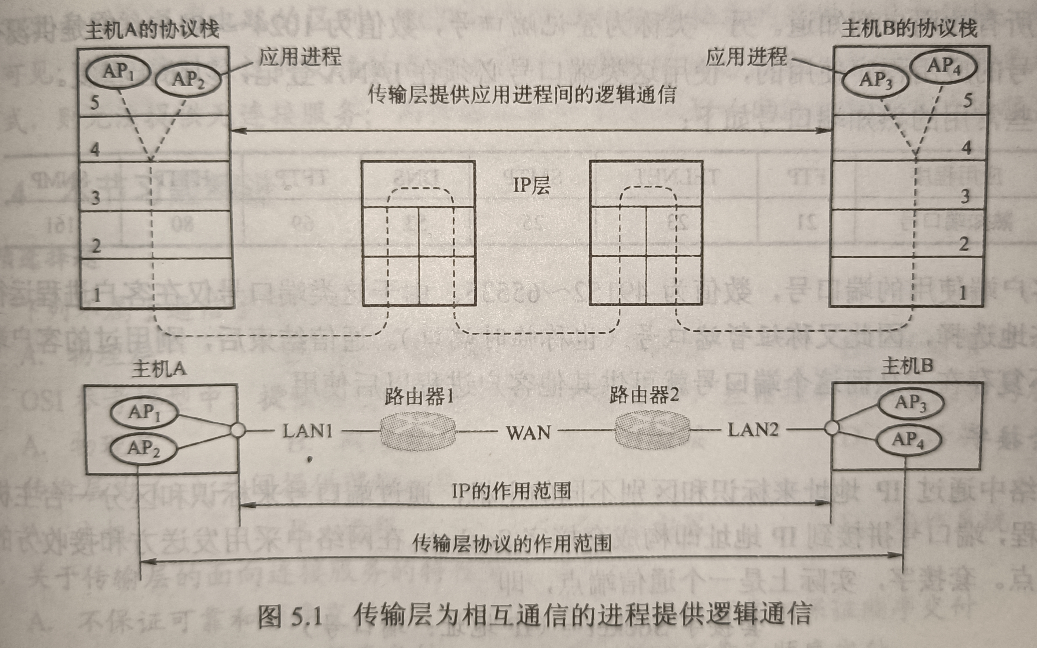 与网络层的区别是,网络层提供的是主机之间的逻辑通信。从网络层来说,通信的双方是两台主机,IP数据报的首部给出了这两台主机的IP地址,但“两台主机之间的通信”实际上是主机中应用进程之间的通信,应用进程之间的通信又称端到端的逻辑通信。