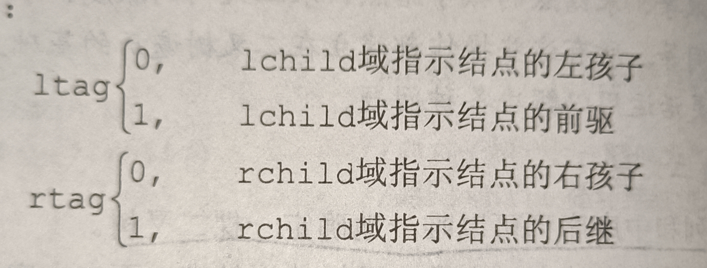 因此还需要两个标志域表示指针域是指向左(右)孩子还是前驱(后继)。