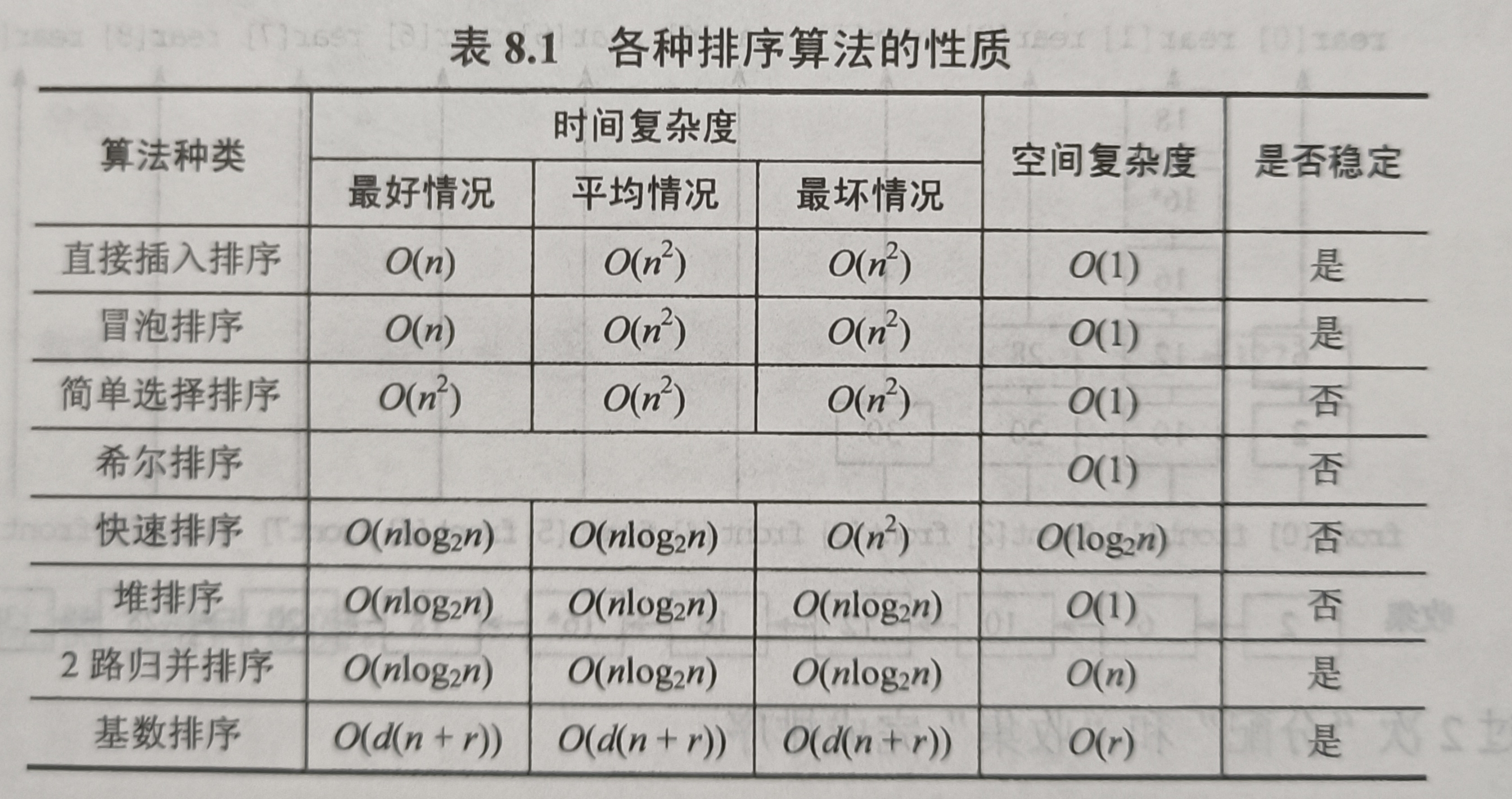 其中,冒泡排序、直接插入排序最好可以达到O(n),而简单选择排序与初始状态无关。