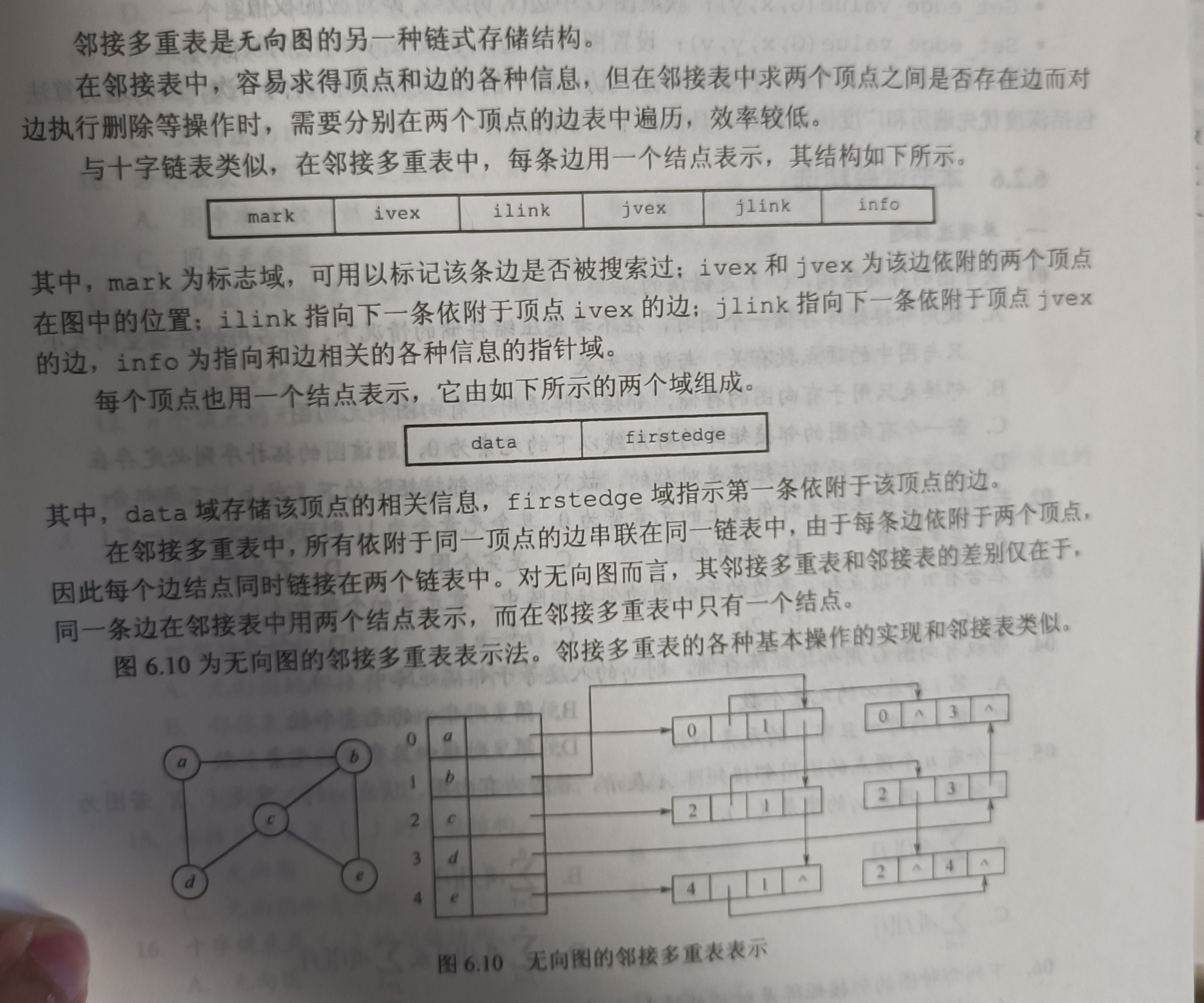 - 给定一结点,可以很方便地找出它的所有邻边;但若要查询两个顶点之间是否存在边,则需要扫描边表,相对邻接矩阵法来说,稍慢。
