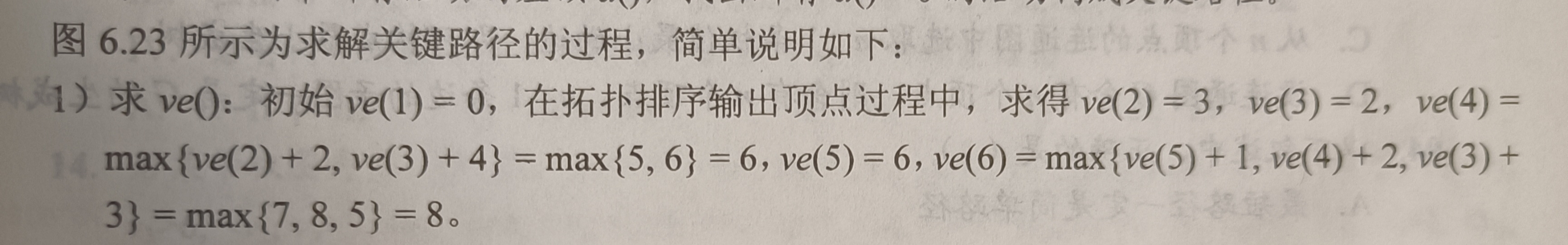 计算ve()值时,按从前往后的顺序进行,可以在拓扑排序的基础上计算:
