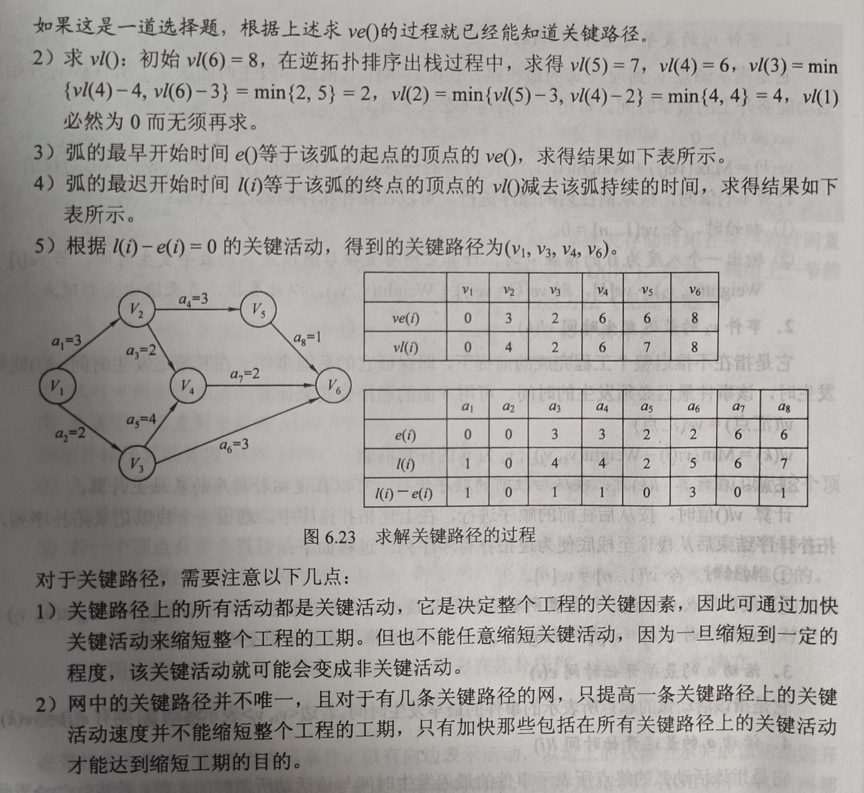 - 根据各顶点的vl()值求所有弧的最迟开始时间l()
