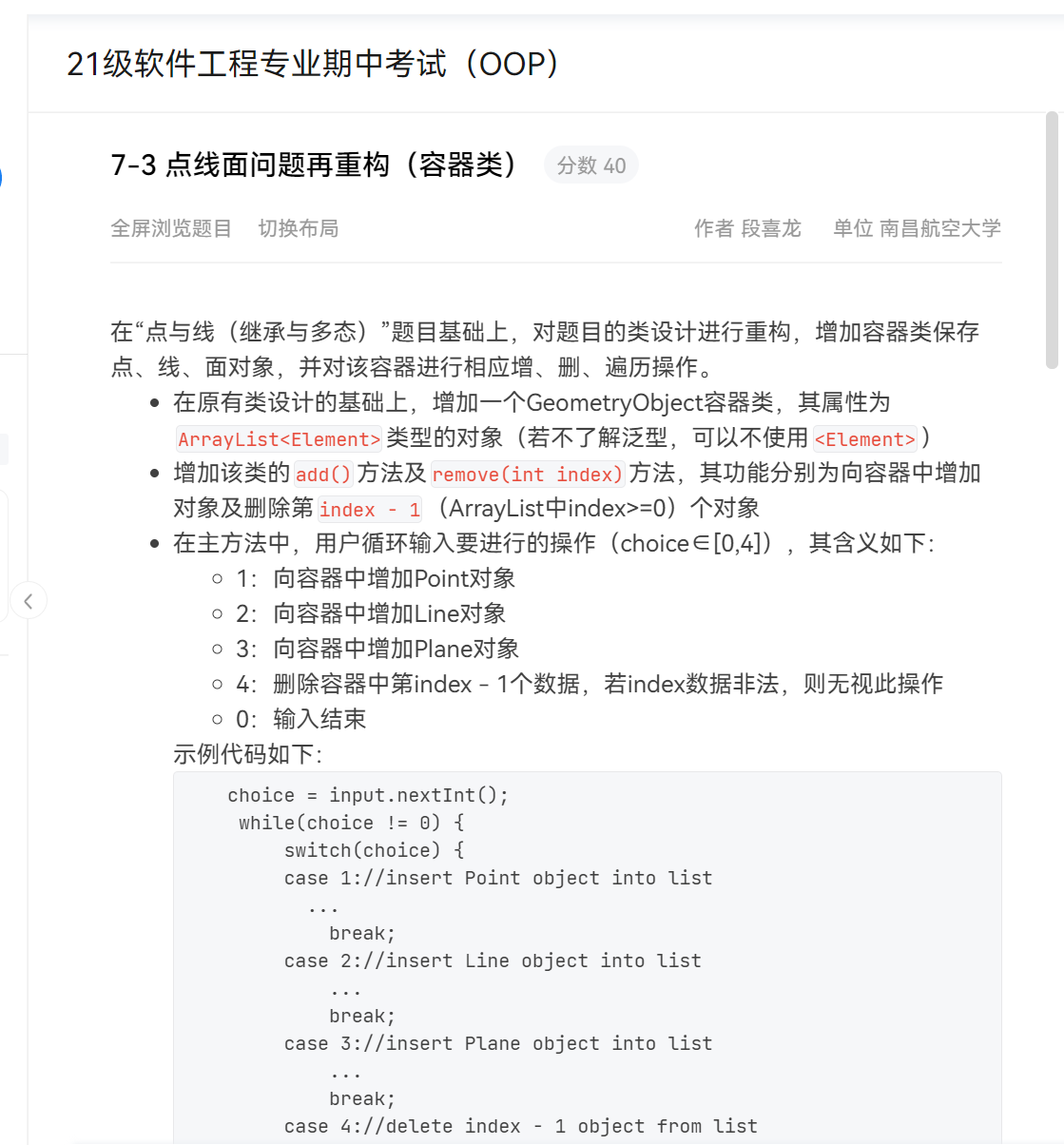 我们南昌航空大学的Java专业课期中刚刚结束,题目难度偏简单,相比于日常作业还是简单了很多。