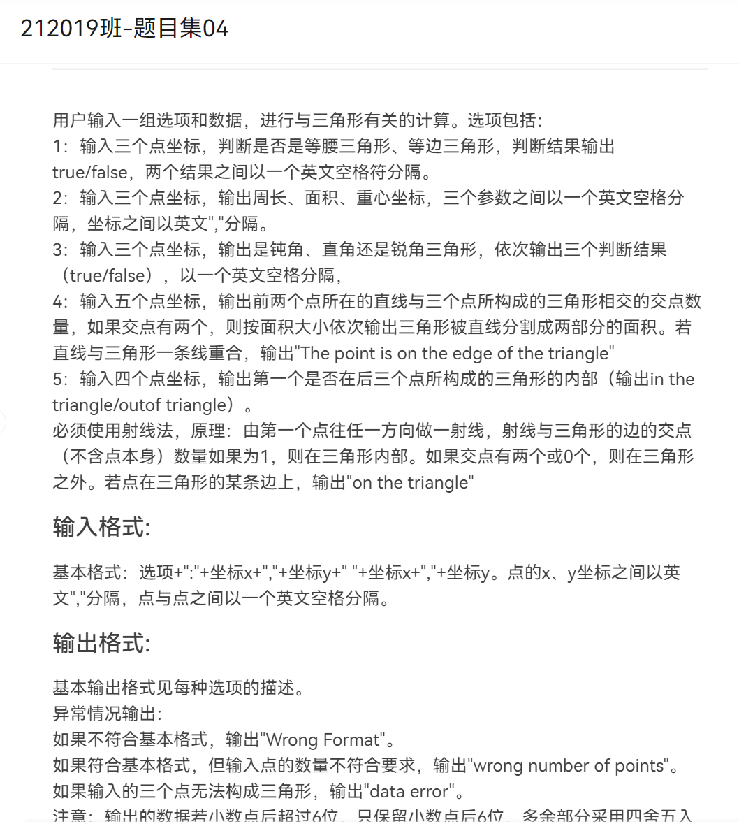 这个代码还没完成,有一个从四边形转到三角形的是哪条边重合我还没解决。因为当时时间截止了,也太晚啦。