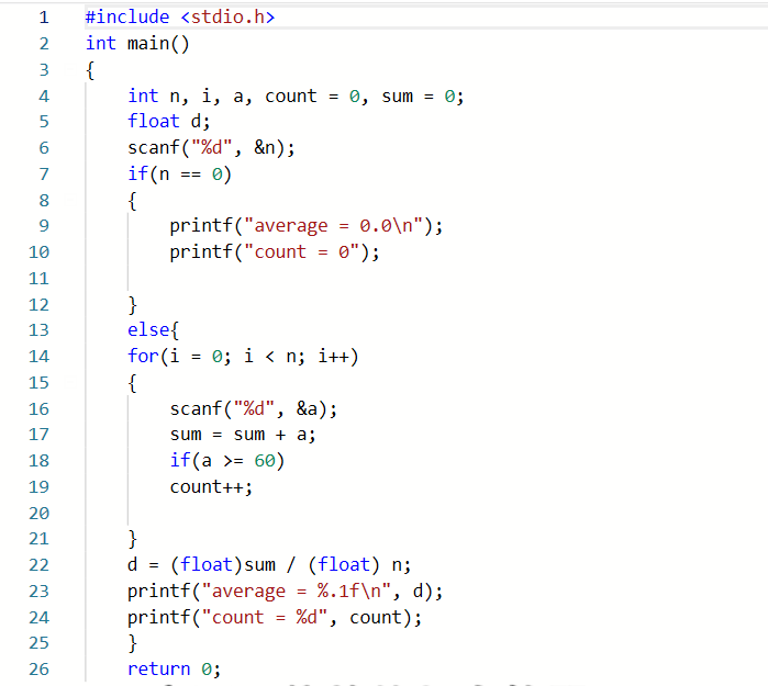 本题要求编写程序,计算学生们的平均成绩,并统计及格(成绩不低于60分)的人数。