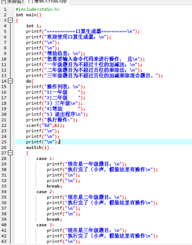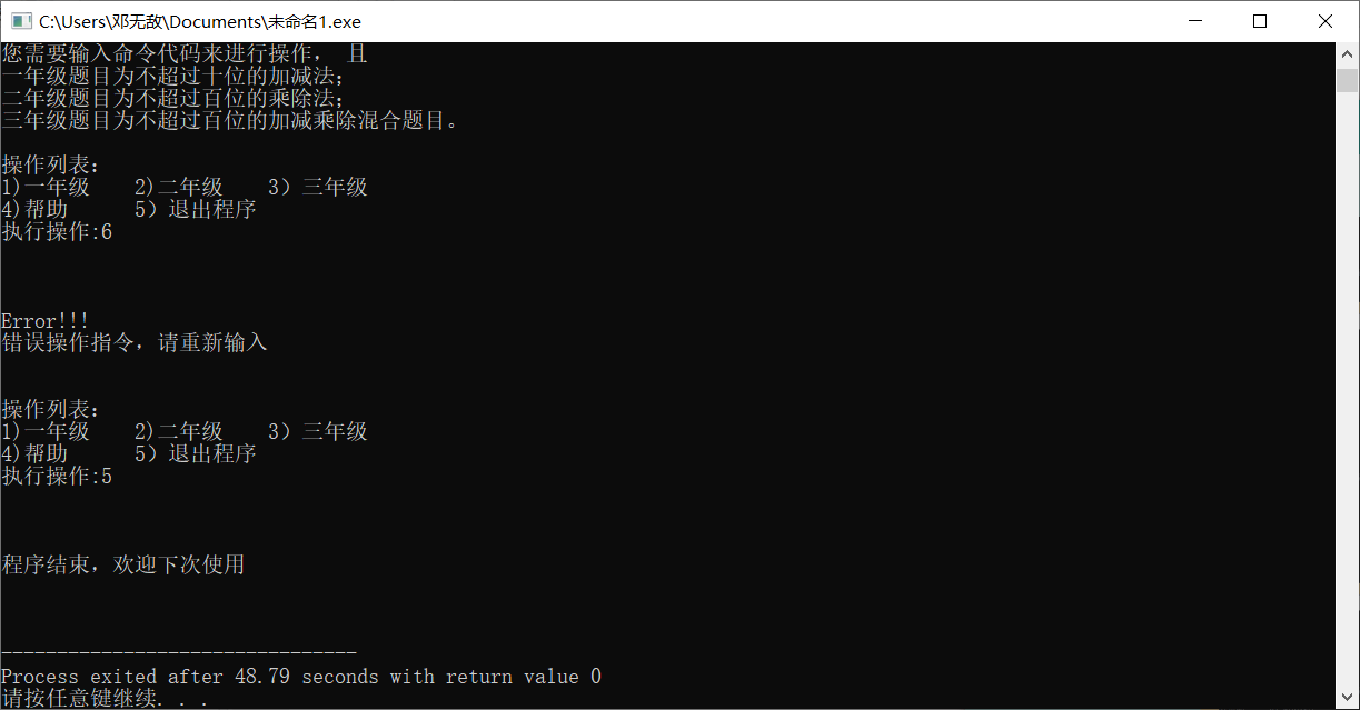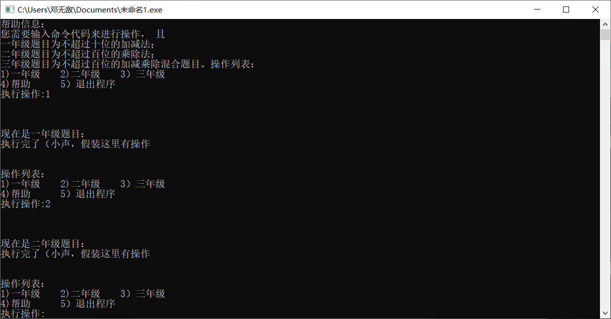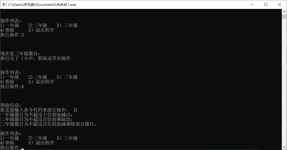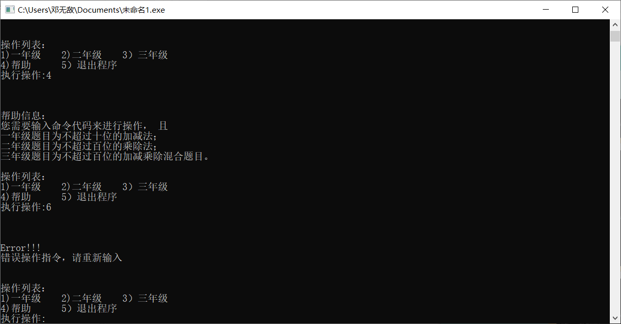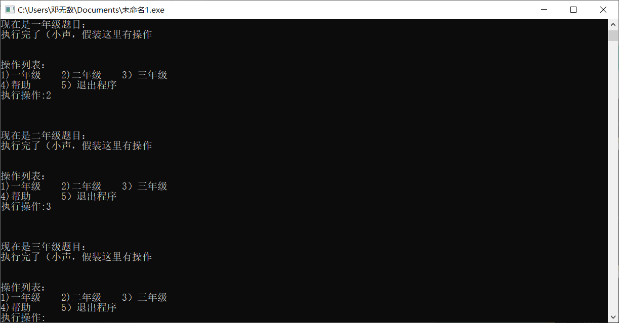 然后看了会之前的作业又记起来了。还有个就是让选择12345那里弄那个循环纠结了好久,我开始用for(;;)死循环,