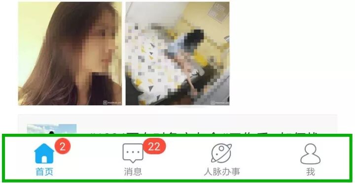 脉脉底部导航栏(请收起你们的口水,忽略那两张妹子照片)