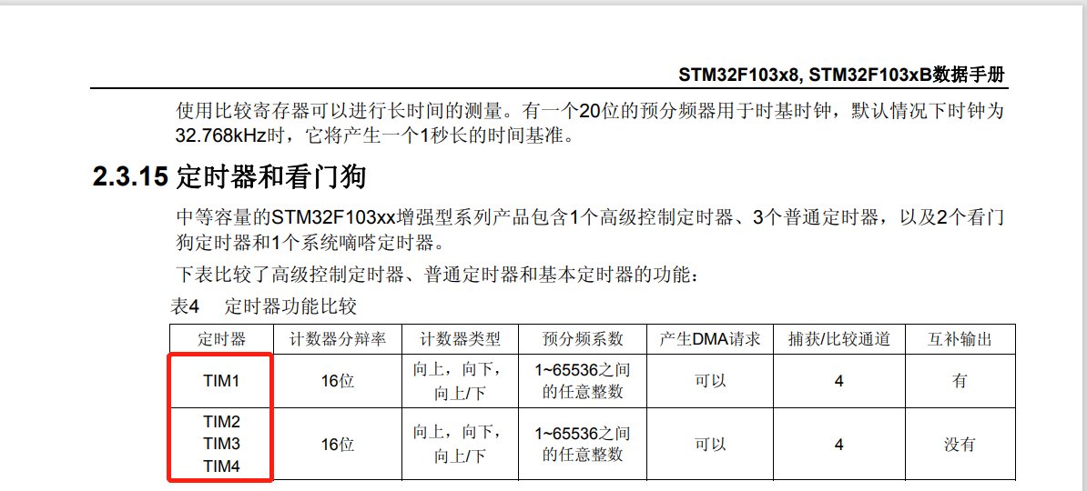 STM32F103C8T6定时器资源:TIM1~TIM4