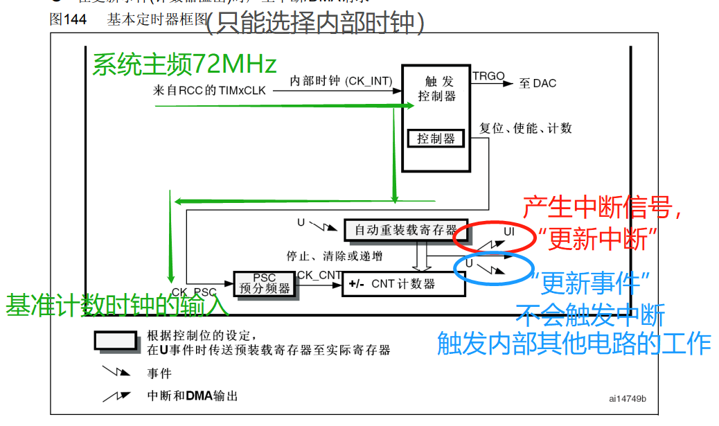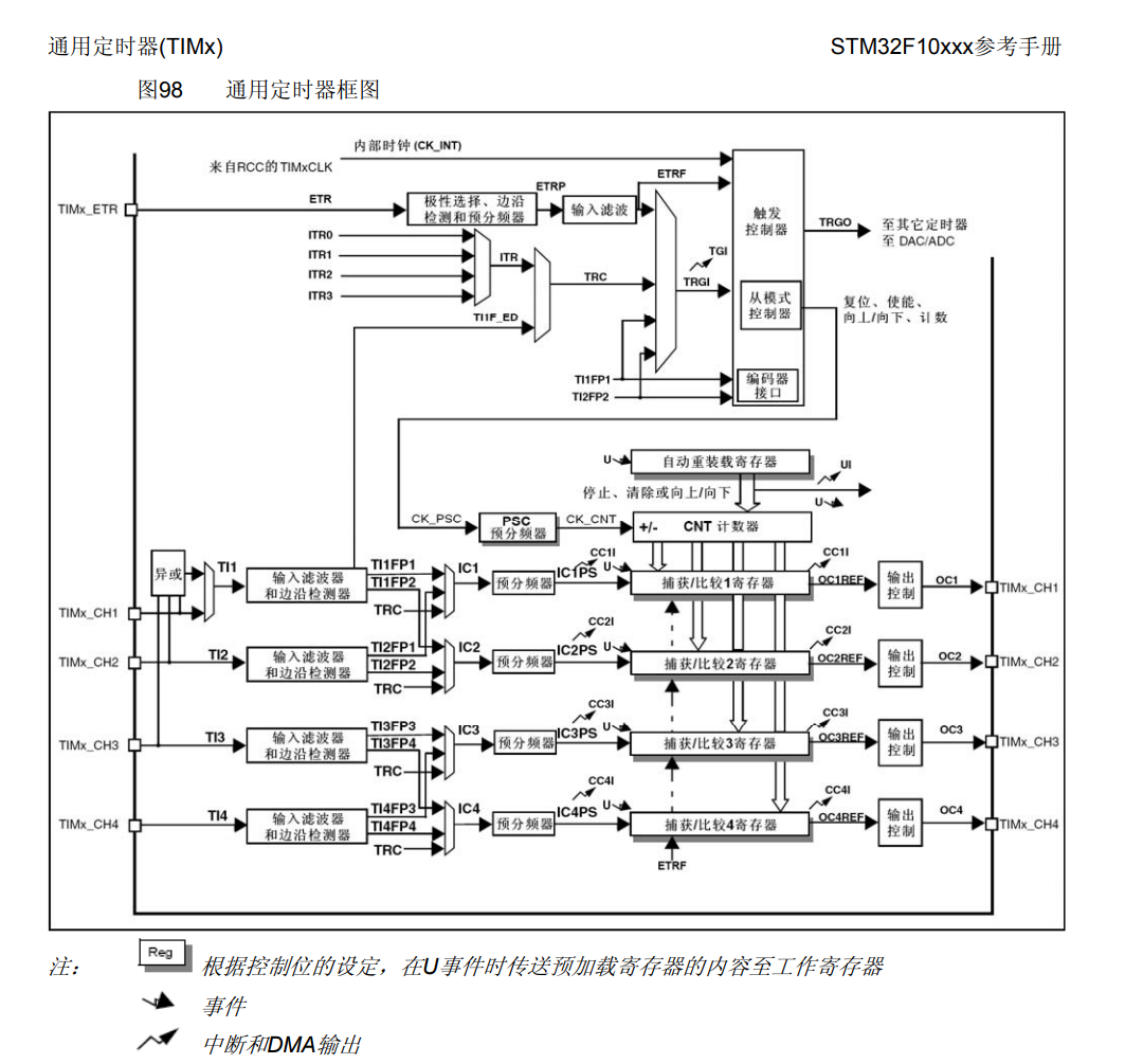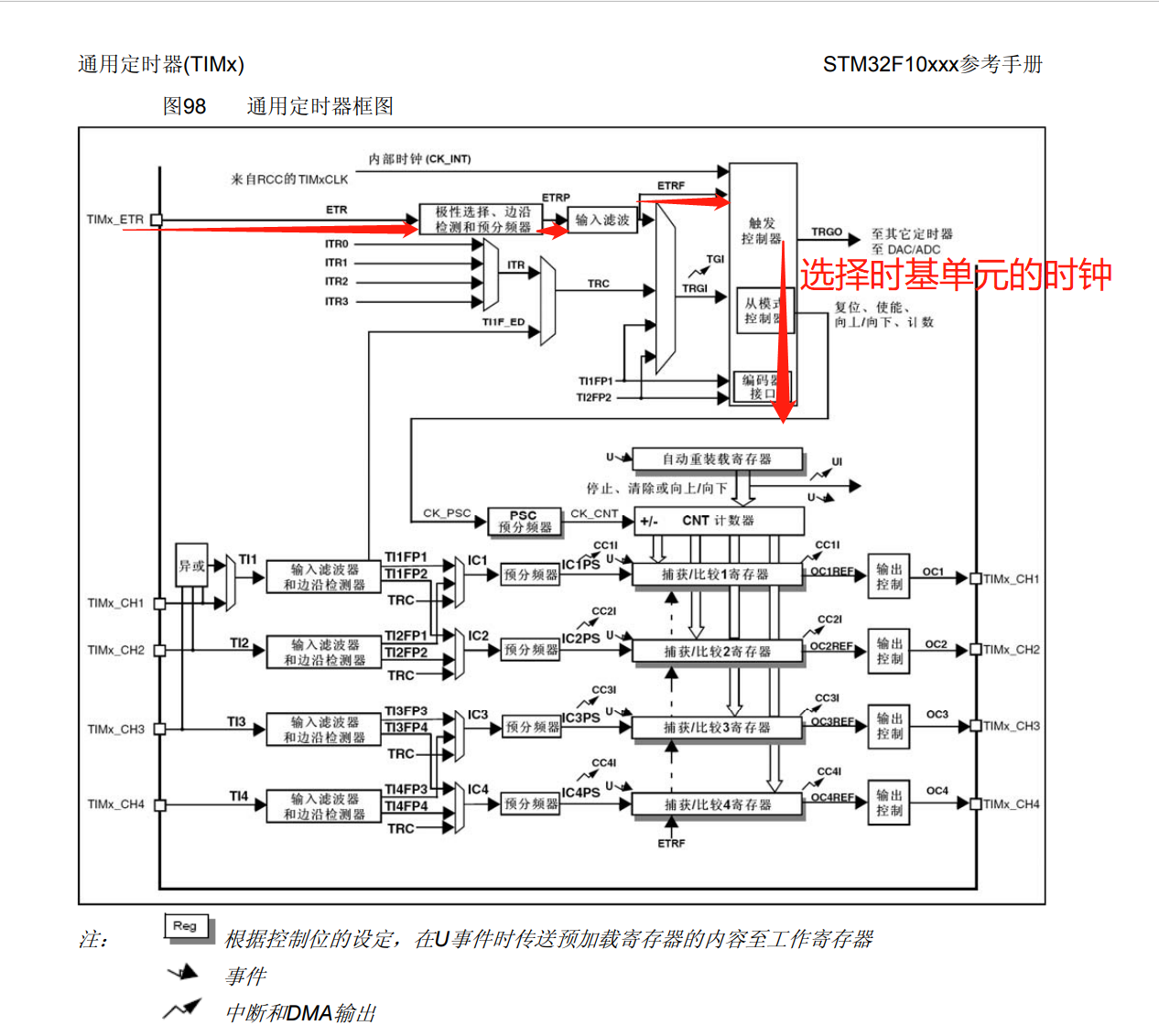 - 时基电路:最基本的计数计时电路包括预分频器,计数器和自动重装寄存器