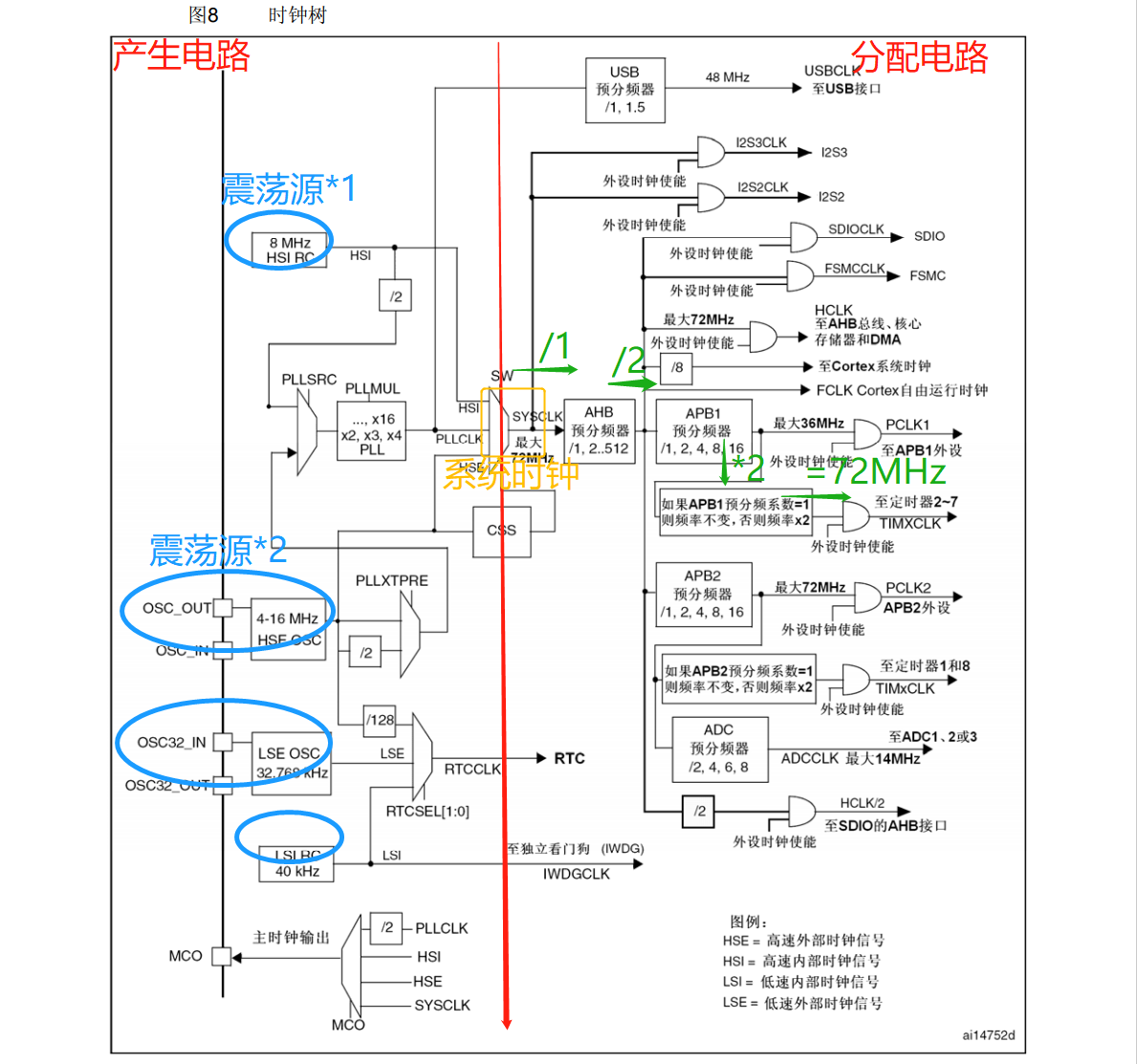 - (寄存器写0是不分频,输出频率 = 输入频率 = 72MHz),(预分频器写1是2分频,输出频率 = 输入频率 / 2 = 36MHz)