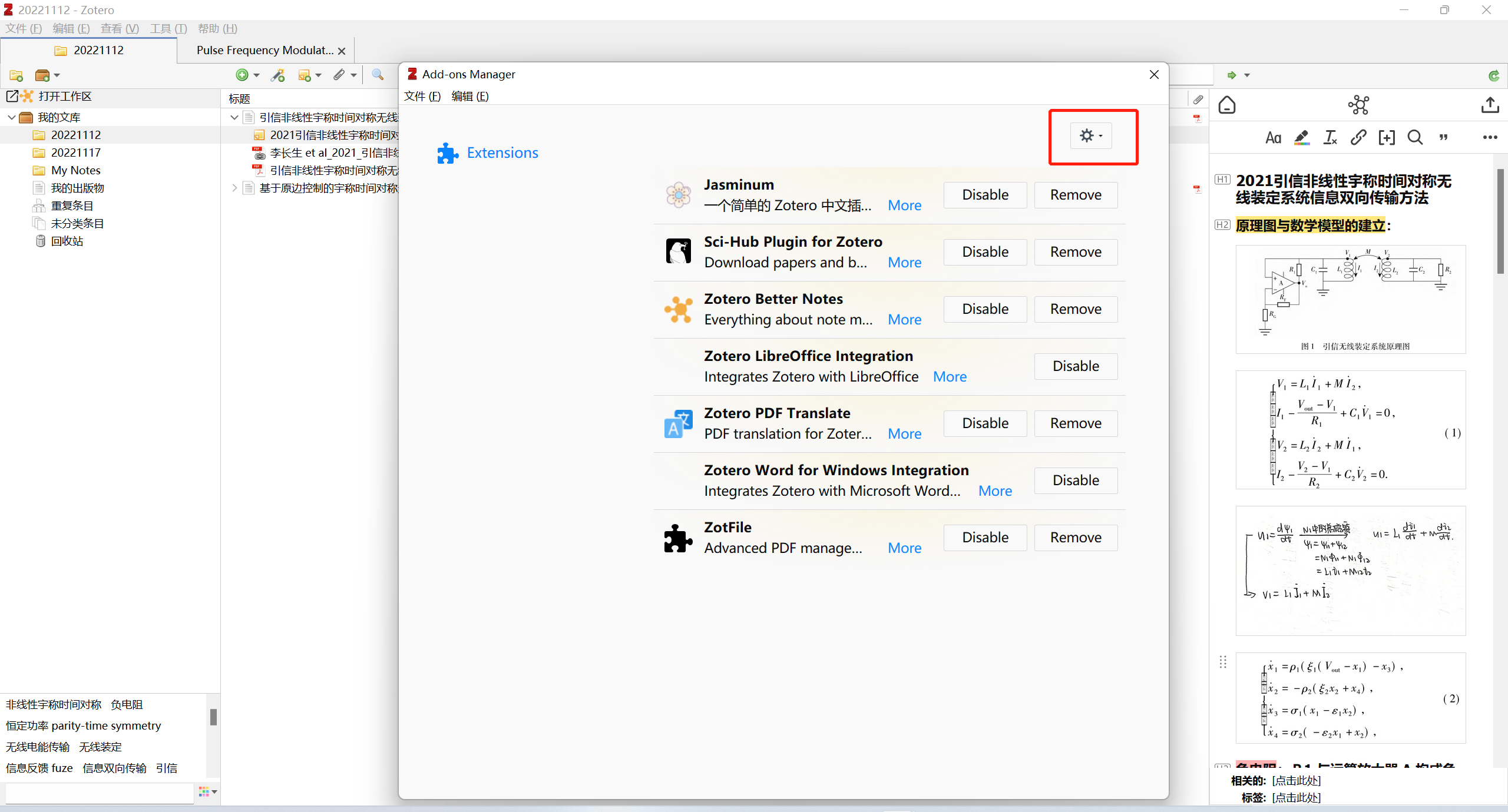 2.下载成功后,打开【Zotero】,从上面工具栏中选中【工具】——>【插件】,点击【设备图标】,下拉选择【Install Add-on From File】